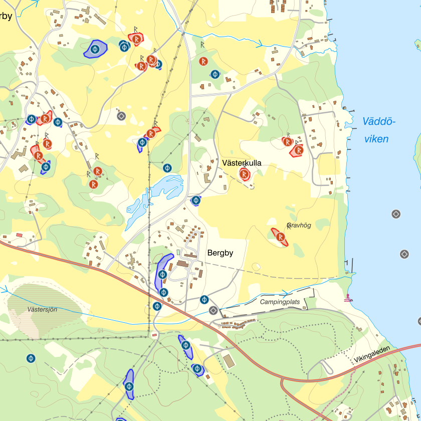 Bergbybadet, en bad- och campingplats vid Väddöviken anläggs 1964 av dåvarande Häverö kommun. Syftet sägs vara att ge barnen i Hallstavik möjlighet att bada i rent vatten. Edeboviken var förr mycket förorenad. Byborna är dock kritiska till platsvalet – här är vattnet både kallt och strömt! Tidigare badade man i en liten vik vid Bergby Brygga (se skylt nr 14). Vid Bergbybadet bedrivs under många år en kommunal simskola, där många på orten lär sig simma. Campingen var tidigare välbesökt men är sedan några år stängd. Den står inför en nystart 2026 med nya ägare. Campingstugorna är dock sålda och ombildade till fritidshus (Brf Bergby).