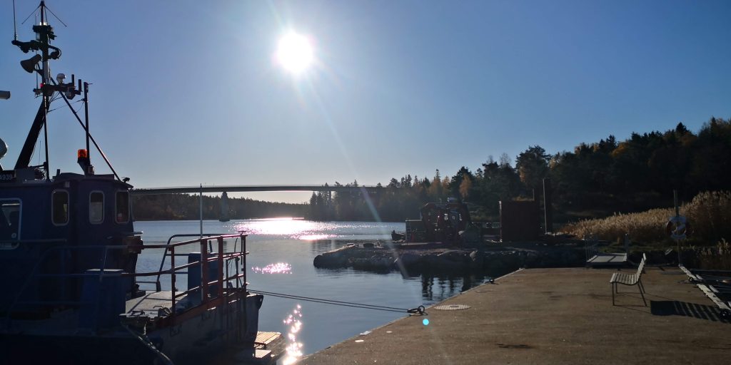 Trästabron is a high bridge that connects the mainland with Väddö. The bridge is 375 meters long and has a sail-free height of 17 meters, it was inaugurated on November 28, 1998 after many years of discussions. Plans to build a bridge have existed since the 1930s, including at Oxberget further north (see sign no. 24). The landfall on the mainland side is located on the border between Bergby and Trästa villages. On the Väddö side, the bridge lands in Fjäll. At the bridge abutment at Fjäll there is a milestone with the text: ½ Upprest af Wäddö och Häfwerö Skeppslag. The milestone stands about 5 km south of Grisslehamn on the post road that was laid to the new Grisslehamn in 1756. From the bridge there is an impressive view over Väddöviken with Singöfjärden on one side and Ortalaviken on the other. The annual Roslagsloppet, one of Sweden’s largest boat racing competitions, passes under the bridge, making the bridge a popular place for spectators. Trästabron is an important transport link between our villages and Väddö.